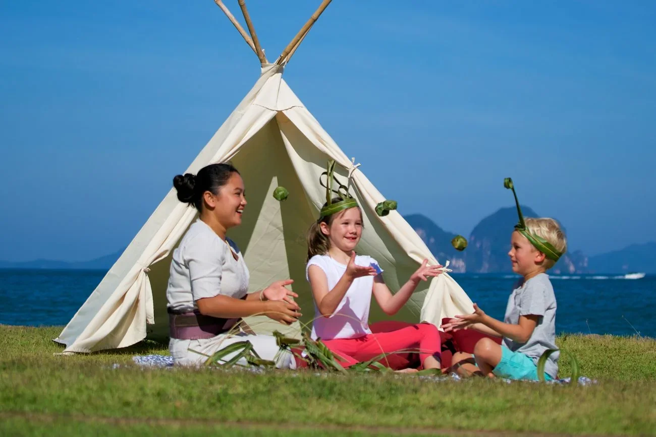 Kids' Highlight: The "Ritz Kids" program here focuses on local Krabi culture, offering traditional batik painting and Thai language lessons. A standout feature is the "In-room Camping" setup, where staff create a magical glamping experience right inside your villa.