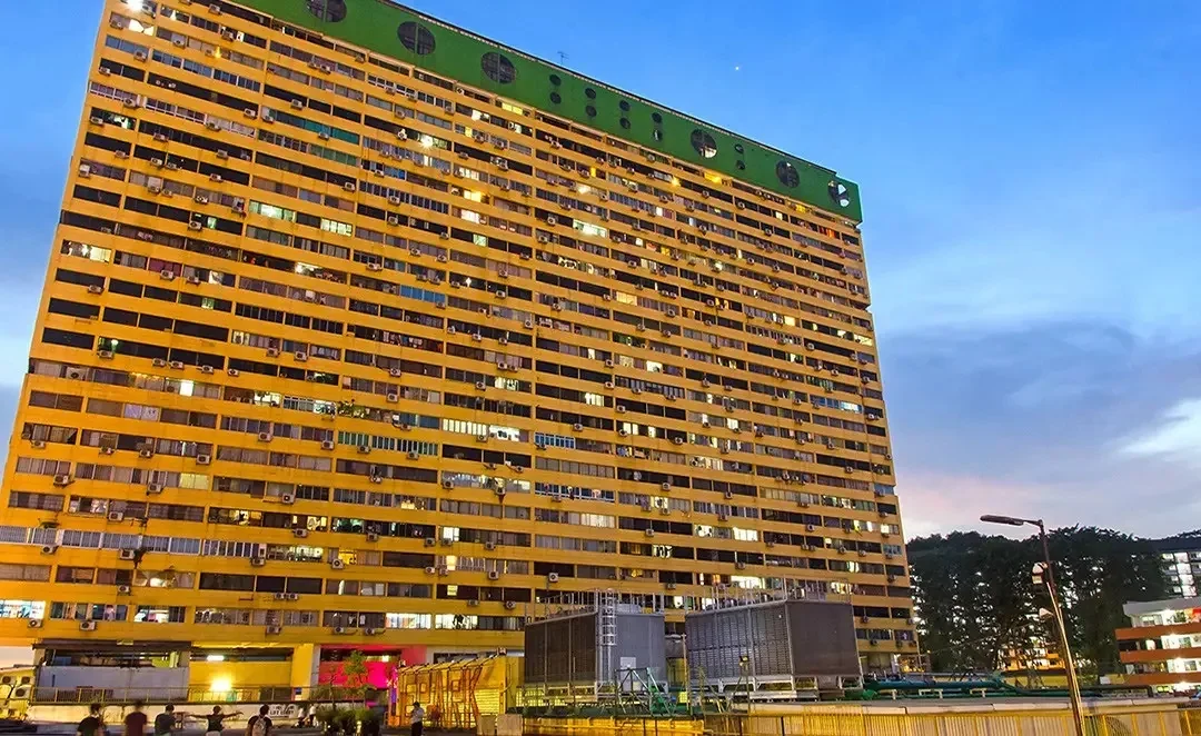 A popular spot for urban photographers. From the upper parking deck, you can capture the striking contrast between the iconic yellow apartment block and the soaring skyscrapers in the background.
