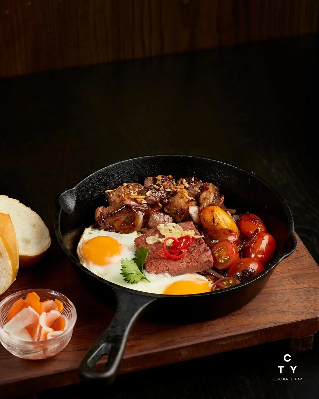 CTY Kitchen + Bar is a chic, industrial-modern hub located at the base of the Centec Tower in District 3. This high-energy spot is celebrated for its inventive fusion menu that bridges the gap between Vietnamese soul food and international comfort, featuring standout items like Chicken Katsu Sandos, Fried Chicken & Waffles, and the savory Vietnamese Skillet.