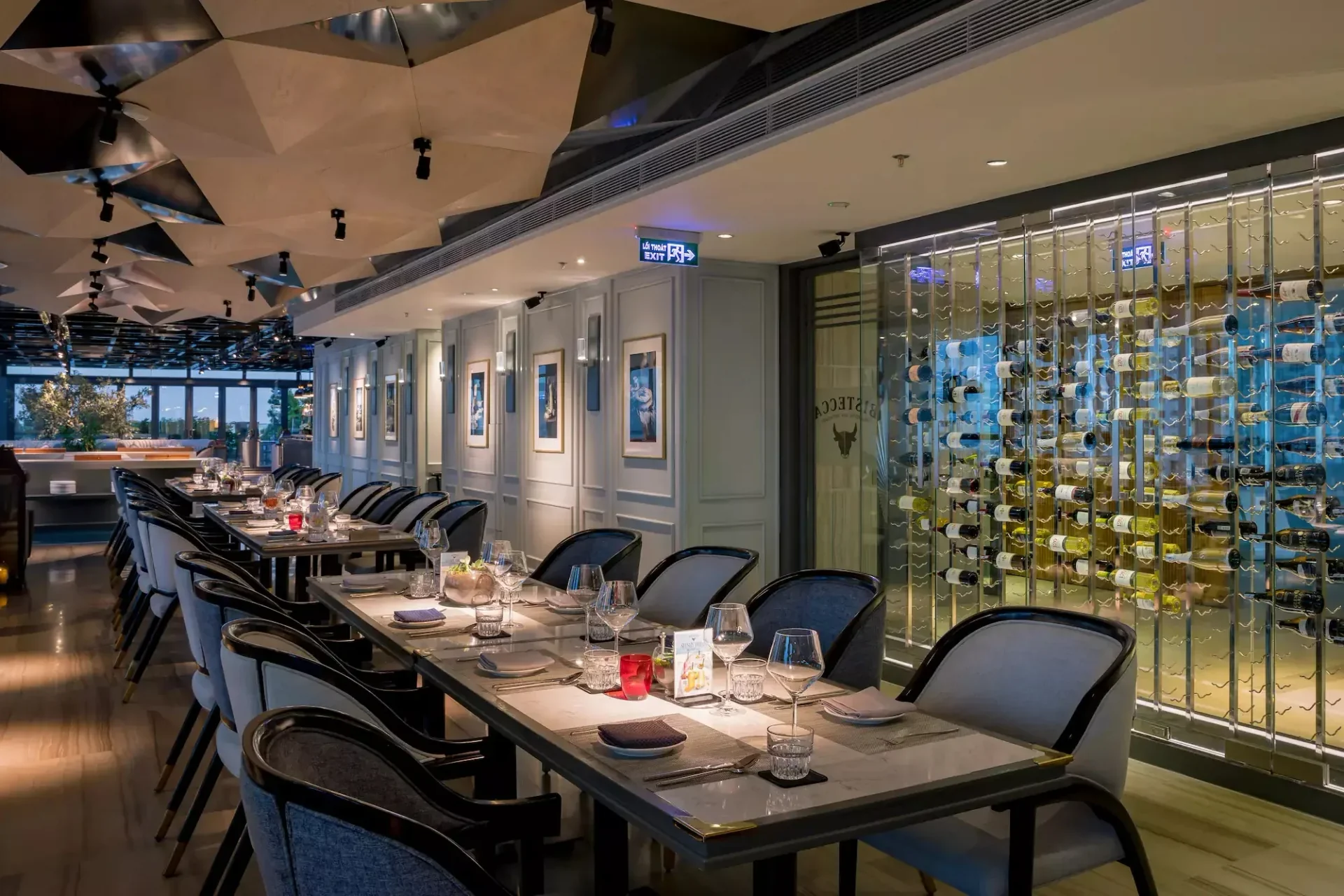 Bistecca is a premier Italian fine-dining destination that offers families a sophisticated yet warm environment for celebration. The restaurant is celebrated for its "Taste of Italy," featuring a menu that highlights premium imported meats—such as A5 Japanese striploin—alongside house-made pastas like squid-ink pasta with scallops and indulgent desserts like crème brûlée. Its sleek, contemporary design is complemented by expansive floor-to-ceiling windows and a breezy balcony, providing breathtaking views of the shimmering Han River and the city’s skyline.