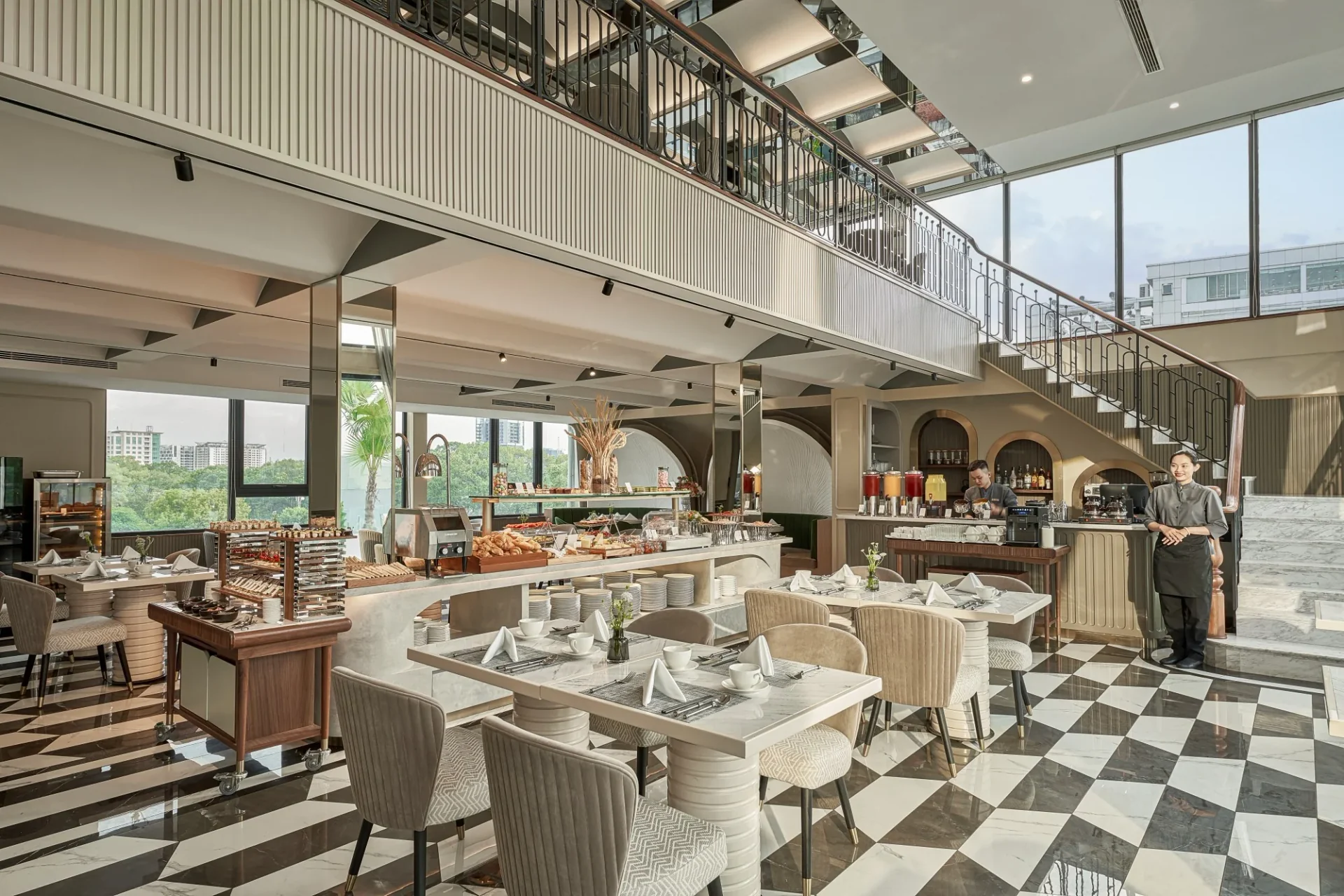 Truffle Restaurant offers an unmatched "dinner in the clouds" experience that is sure to fascinate the entire family. As a Michelin-selected establishment, it features a world-class menu by Michelin-starred Executive Chef Pierrick Maire, focusing on authentic Côte d'Azur-inspired cuisine where premium ingredients like A5 Kobe beef, Hokkaido scallops, and fresh truffles are expertly prepared. The restaurant’s spacious, luxurious interior and floor-to-ceiling windows provide breathtaking 360-degree views of Ho Chi Minh City, turning a high-end family meal into a thrilling visual event.