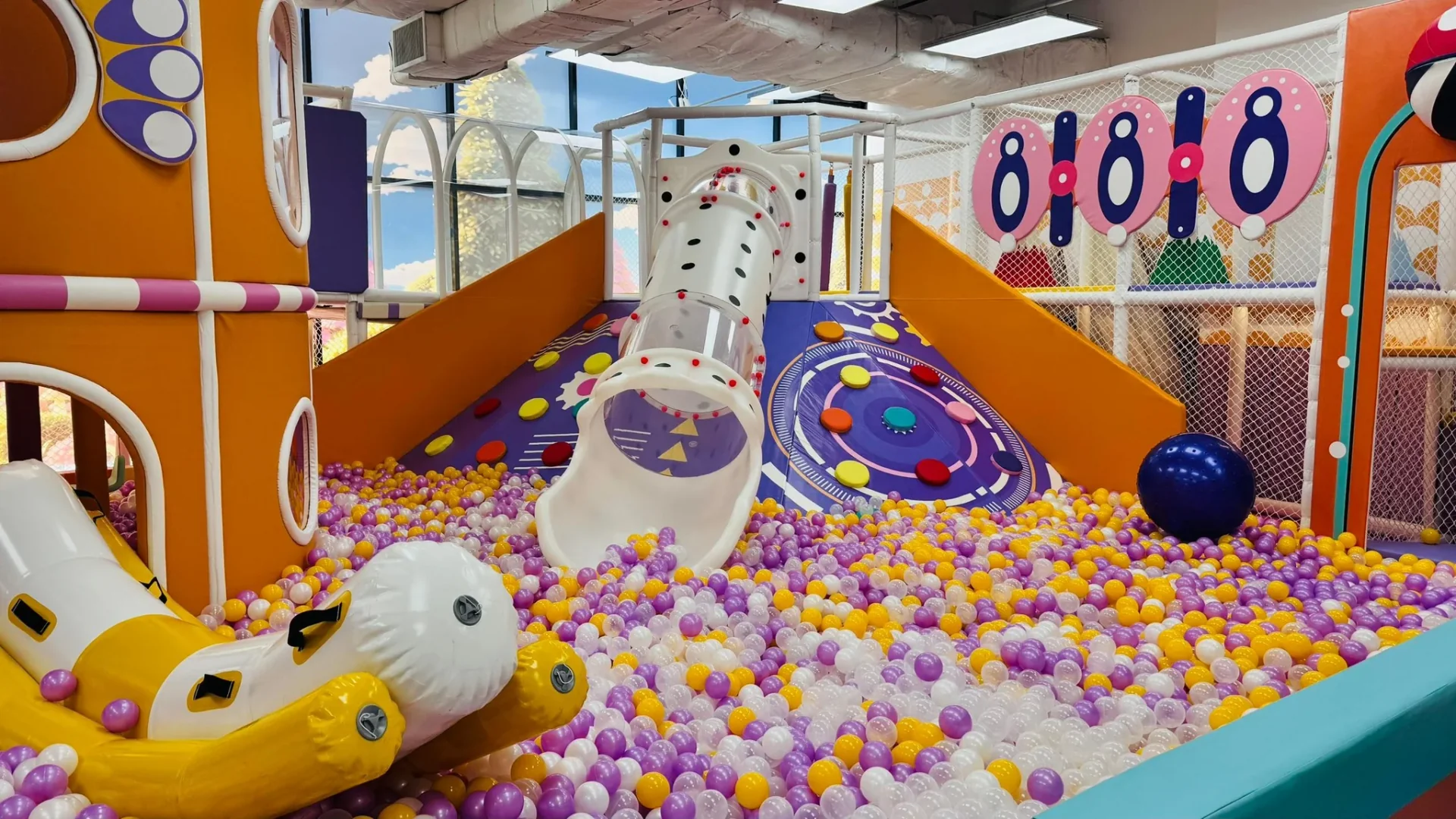 Why Kids Love It: High-tech interactive ball-shooting walls and the signature "Kiztopia Friends" characters.